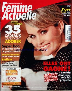This book FEMME ACTUELLE [No 1314] du 30/11/2009 - PRIX 2009 DES FEMMES FORMIDABLES / LAETICIA HALLYDAY -j'OSE LE NOIR POUR MODERNISER MA DECO -35 CADEAUX QU'IL VONT ADORER / SPECIAL ENFANTS -14 RECETTES FACILES DE GRATINS INVENTIFS -BANQUES EN LIGNE / ON SE LAISSE TENTER -TOUTES RADIEUSES AVEC CES FARDS INVISIBLES you must read.